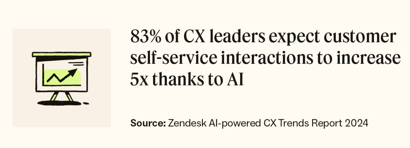 Most customers expect quick, simple resolutions. However, they are happy to self-serve if you give them the option. Over 80% of business leaders believe self-service interactions will increase five times due to artificial intelligence (AI).