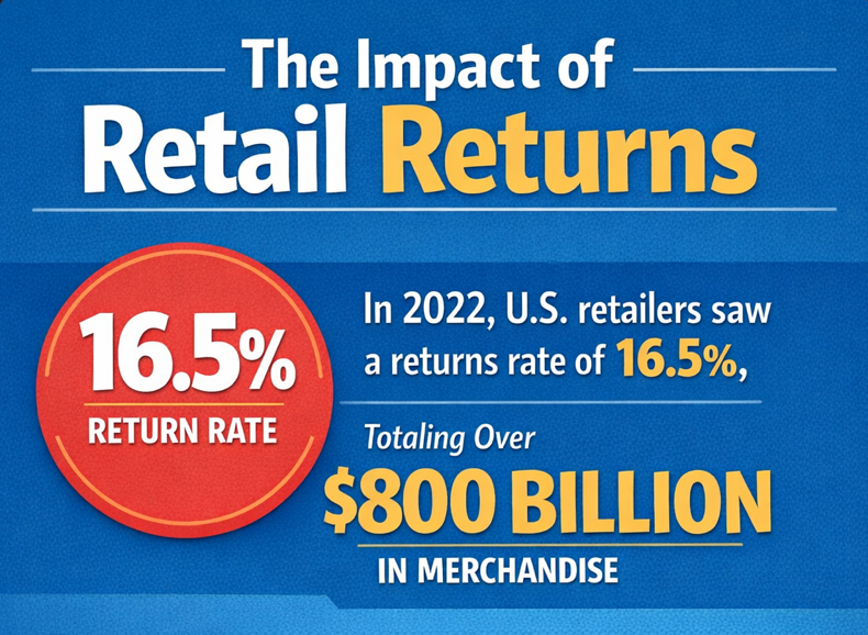 • US retailers saw a returns rate of roughly 16.5% in 2022, representing more than $800 billion in merchandise. Streamlined returns help shoppers feel safe trying your brand.